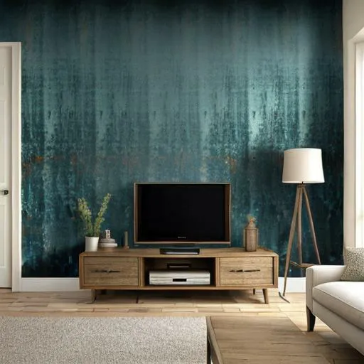 جلوه کاغذ دیوار پتینه در پشت تلویزیون