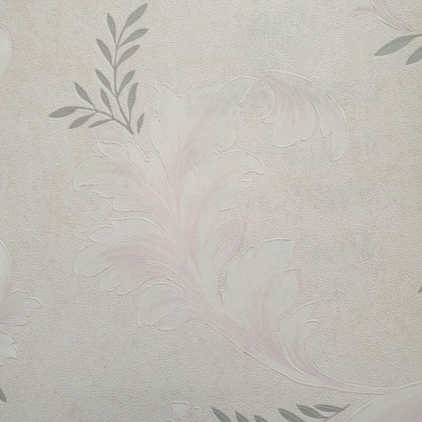 کاغذ دیواری اتاق خواب 910117 دارای یک پس زمینه کم رنگ و ملایم از برگ های صورتی است. همانطور که در عکس پیداست رنگ صورتی برگهای این طرح مناسب برای اتاق خواب می باشد. طرح این برگ ها الهام گرفته از جنگل های استوایی است که دارای برگ های پهن و درشت هستند. برگ های ریز و طوسی چسبیده به آن نیز به زیبایی این طرح افزوده است.