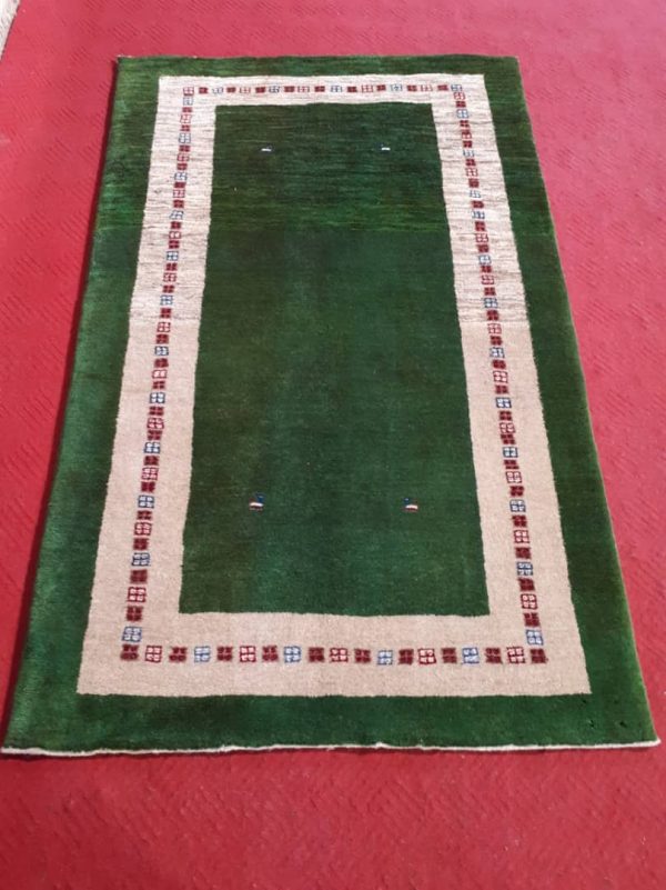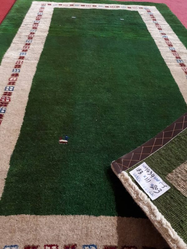 Gabbeh 1434 from EPERISNRUG store is a green Gabbeh or grun Gabbeh teppich with size 6 feet by 3.6 feet. or 183 cm by 111 cm. The material of this Gabbeh is pure sheep wool and hand made. Sku number is 1434.